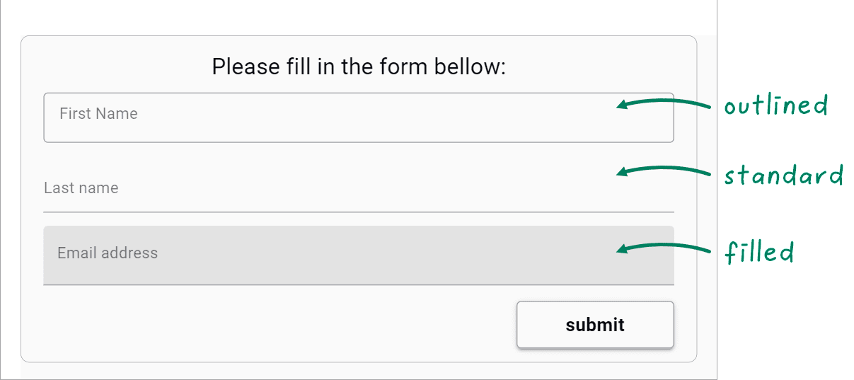 Use the Variant property to customize the appearance of each form field. Pick one of three options: