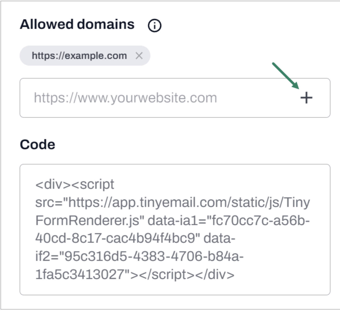 First, enter the domain of the site(s) where your live form will be hosted, then click the plus (+) icon. Yes, it may seem like an extra step, but it’s a necessary security feature that helps prevent unwanted spam submissions.