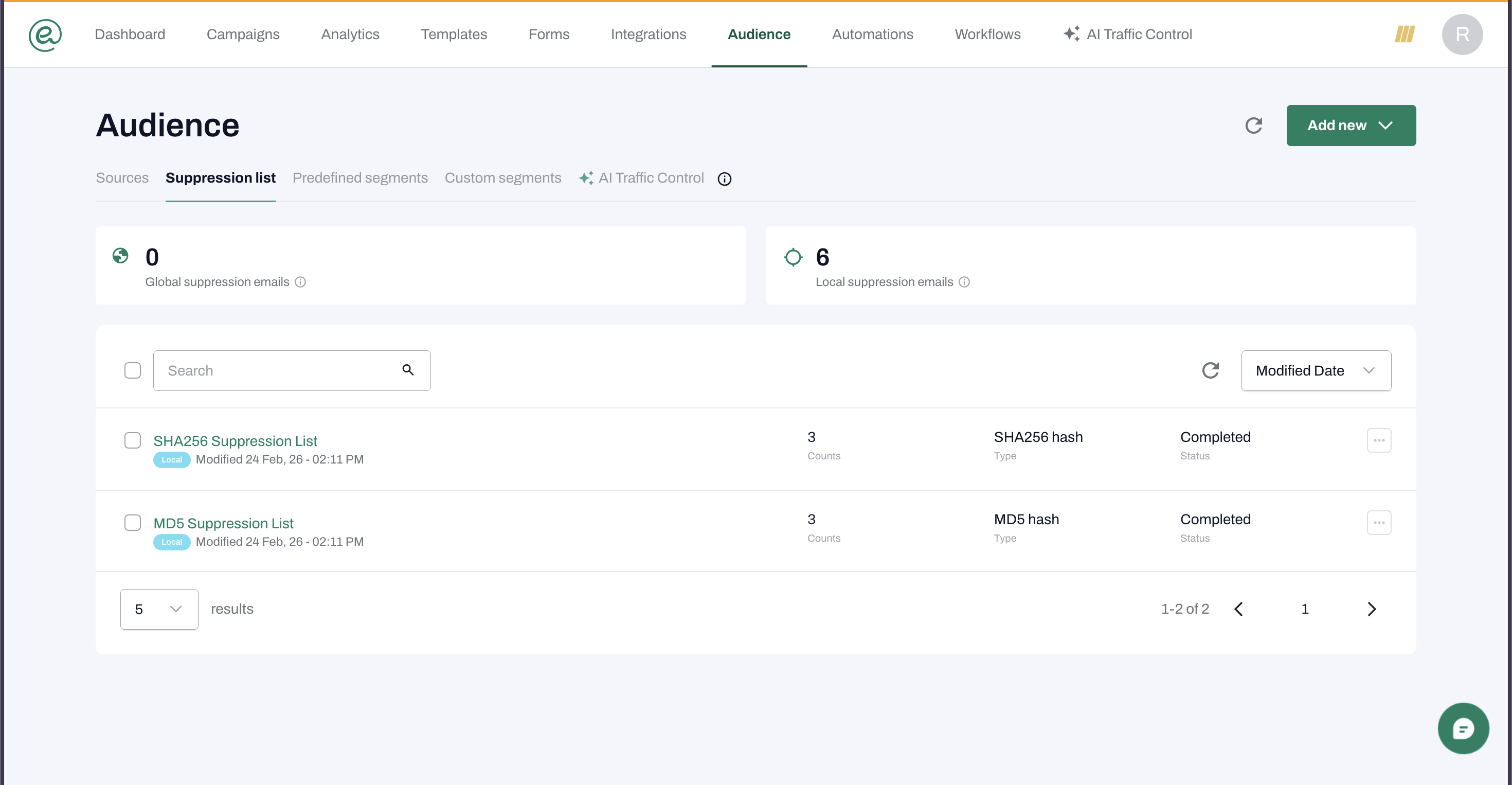 Once you upload your file, the suppression status is reflected in your account. You will receive a clear confirmation once the processing is complete, ensuring that your suppression lists are accurate and reliable.