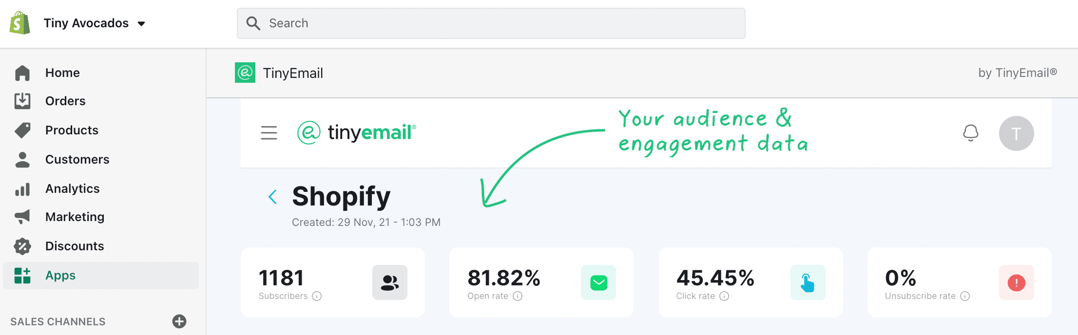 And that is it! You have successfully integrated your Shopify store with tinyEmail through the native app.