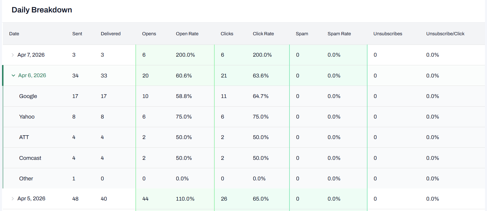 Drill down by date: You can use the expandable accordion rows to click into any specific date. This expands the view to reveal the detailed ISP-level breakdown for that exact day.