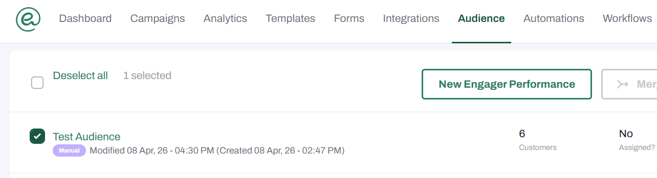 - Select New Engager Performance.