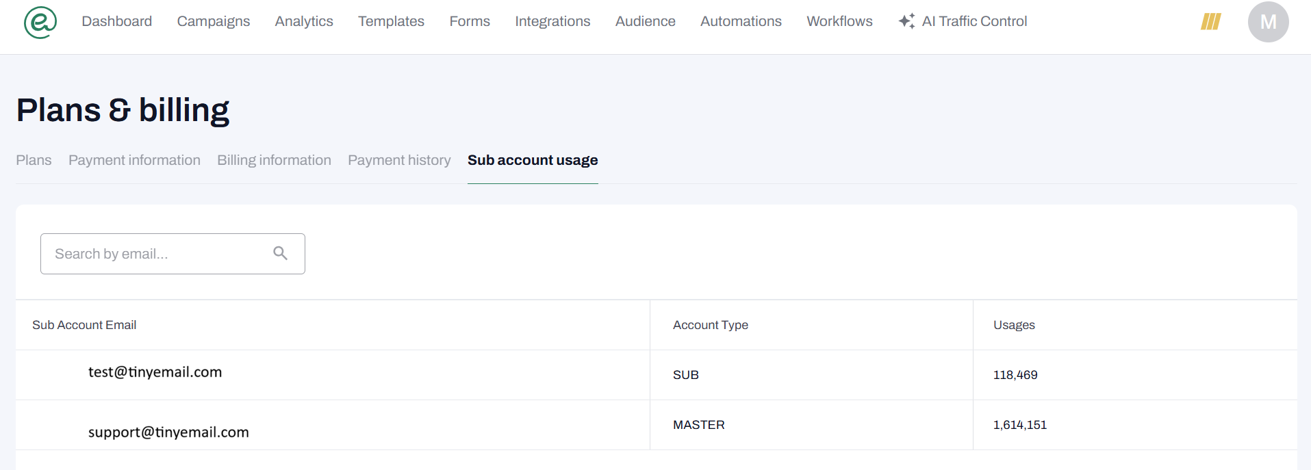 3. Navigate to the Sub account usage tab.